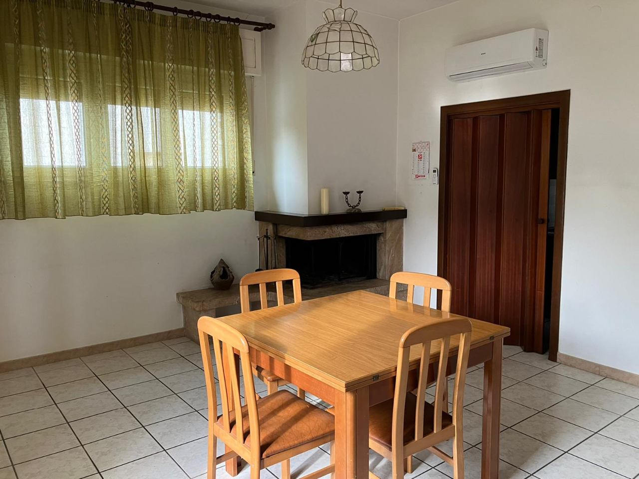 Il primo piano è composto da 6 ambienti: nel lato anteriore ampia sala da pranzo con camino e accesso al terrazzo, angolo cucina, soggiorno e una camera da letto.