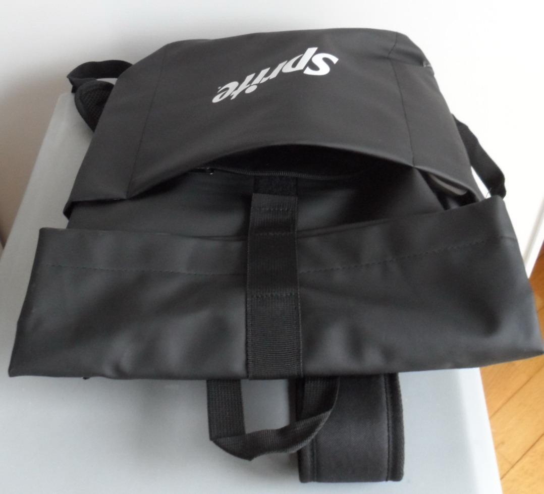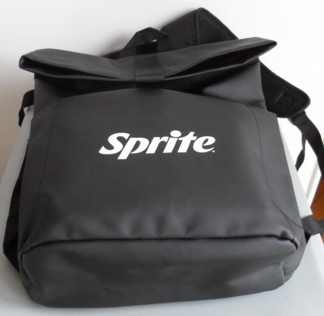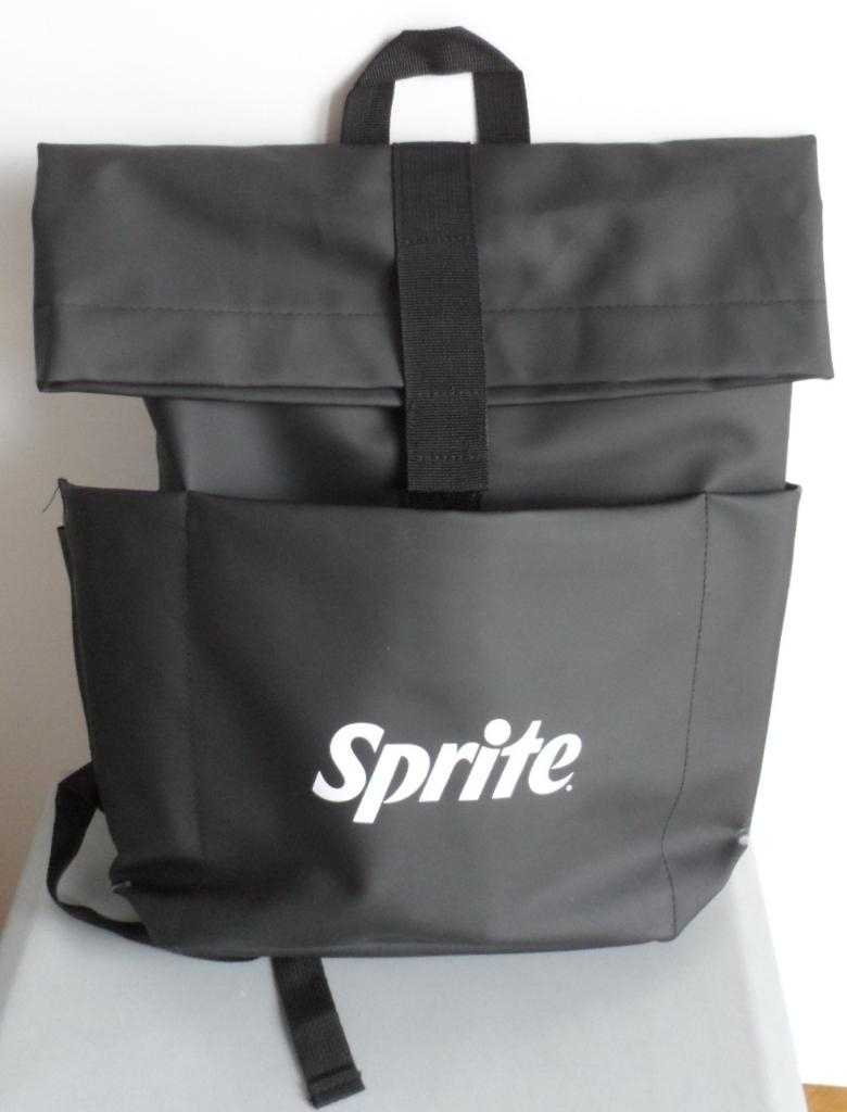 Zaino Sprite Originale brandizzato- Nuovo mai usato ed ancora imballato-Colore Nero con scritta bianca, con fibbie e lampo nere- Vendo per non utilizzo a Euro 20 - Preferisco ritiro diretto- Astenersi perditempo -Adatto per scuola, sport, campeggio e tempo libero. Dimensioni: H cm 540totale e 42 richiuso - L 27 e P 10.in ecopelle - con scomparto interno separato, e 3 scomparti separati esterni, con chiusura lampo, 1 centrale e 2 laterali