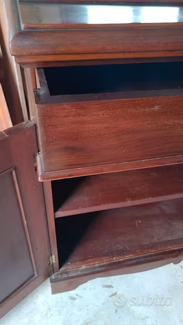 Vendo per svuotamento cantina un bellissimo mobile credenza XIX secolo stile Luigi Filippo composta di due segmenti: parte inferiore mobile con due ante e ripiani + parte superiore con due ante a vetrina e ripiani.