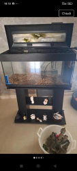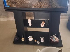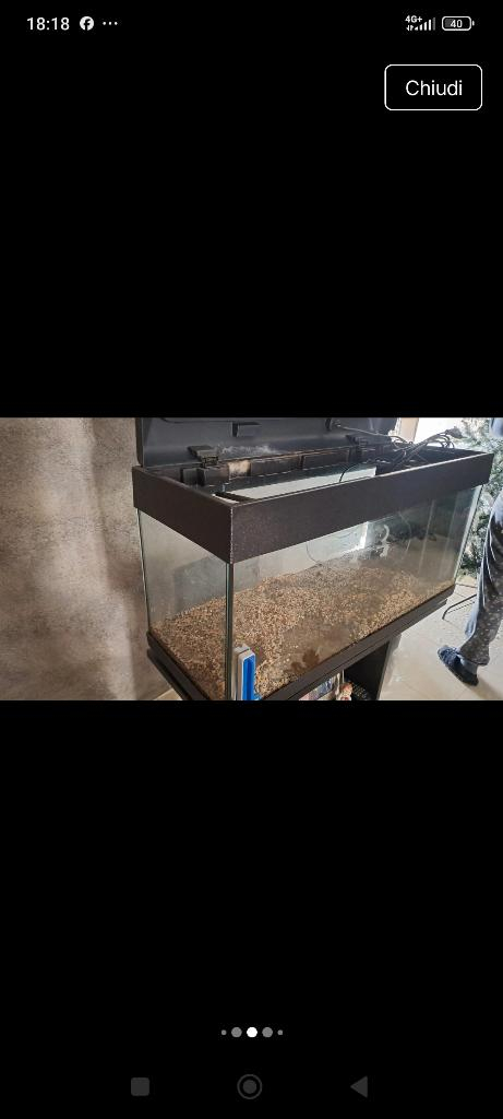 Vendo acquario, capacità circa 100 litri,10 anni... mobiletto da appoggio colore nero, usato per pesci di acqua dolce,fornito di termo regolatore,breccia per il fondale e qualche accessorio di abbellimento..80 euro trattabili
