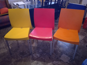 OCCASIONE Vendo 10 tavoli bianchi e 40 sedie colorate molto comode, e 4 sgabelli tutto in ottimo stato,per cessata attività di pizzeria