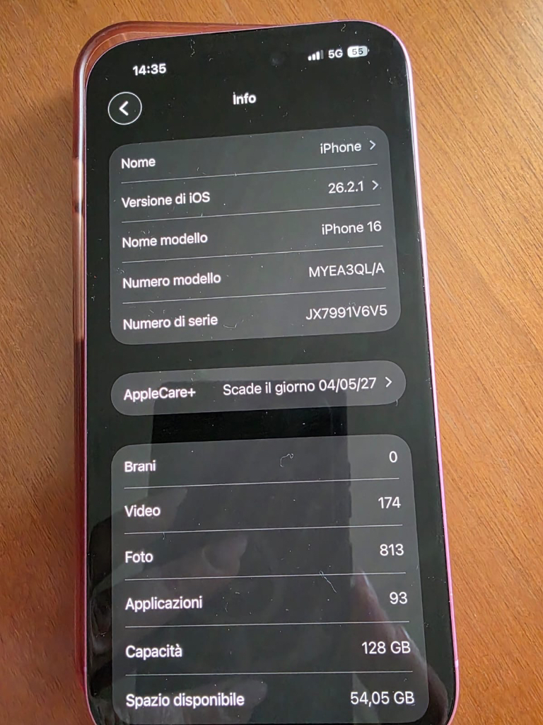 Vendo iPhone 16 rosa 128 gb tenuto maniacalmente.Il telefono è in perfette condizioni nessun graffio é compreso di custodia,vetrino temperato e vetrino per fotocamera,caricabatterie originale e scatola sua originale.Comprato a maggio 2025.Davvero come nuovo.Vendo per passaggio a modello superiore.Prezzo un po trattabile.