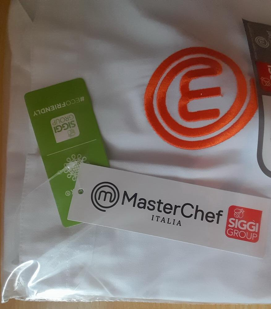 Grembiule MasterChef della SIGGI Group- NUOVO ancora imballato (aperto solo x foto) Colore Bianco con marchi in rilievo ricamati, brandizzato- Vendo per non utilizzo ad Euro 20- Preferisco il ritiro diretto- Astenersi perditempo-Dimensioni cm : H 84, più fascia al collo con chiusura regolabile in velcro- Larghezza cm 70