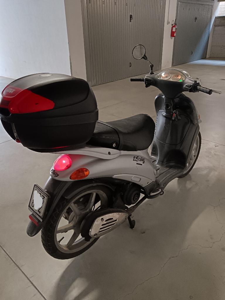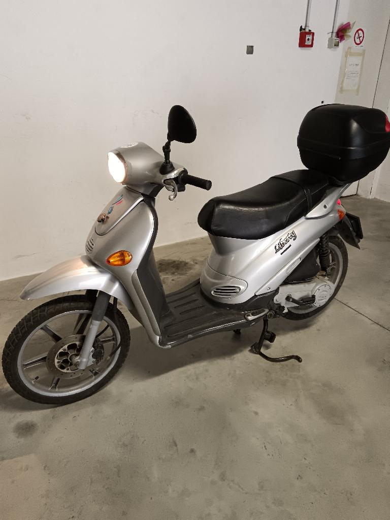 Vendo liberty 50 4 tempi con bauletto, anno 2003 km 44.000, cambiato cilindro e pistone Malossi a 35000km, tagliandato a settembre 25 con batteria e motorino avviamento nuovi.