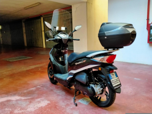 regolarmente tagliandato, sempre in garage, 2 proprietari, motore Euro 4, gomme e batteria nuove, casco, cupolino estivo e caricabatteria. Ci sono 2 piccoli tagli uno sul parafango anteriore e uno sul pannello laterale.