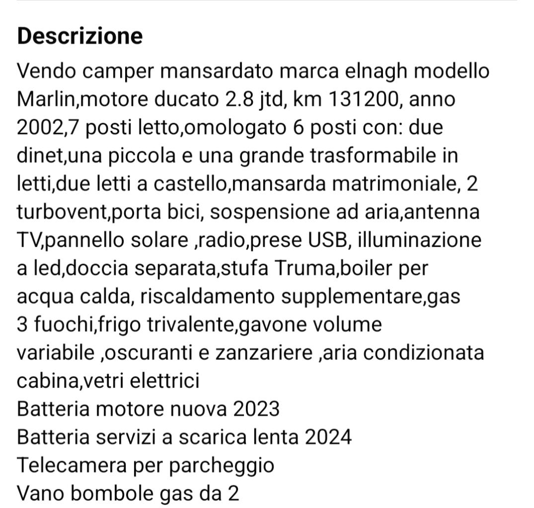 Vendo bellissimo camper mansardato