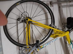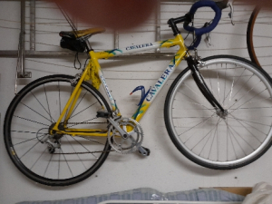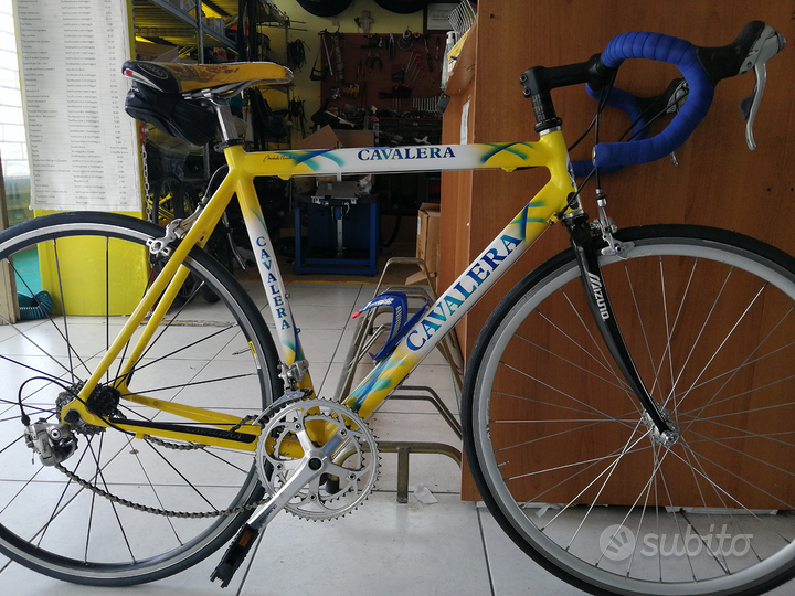 taglia 4, blocco cambio revisionato. Dietro monta un Shimano RX100 da 8 rapporti (disponibile anche cerchio originale a 7 rapporti), avanti un Shimano SGB-53 da 2 rapporti. Sostituiti tubolari e nastro manubrio.