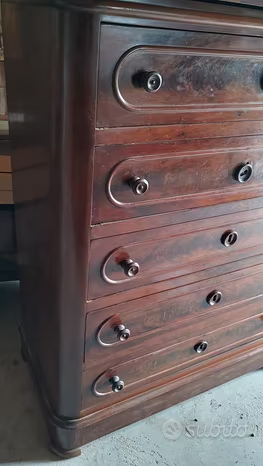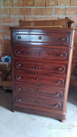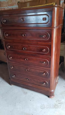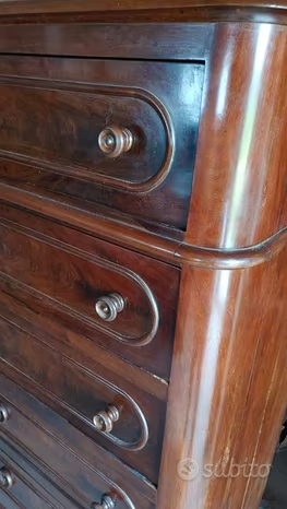Bella e solida cassettiera stile Luigi Filippo secolo XIX in palissandro con 6 cassetti.
