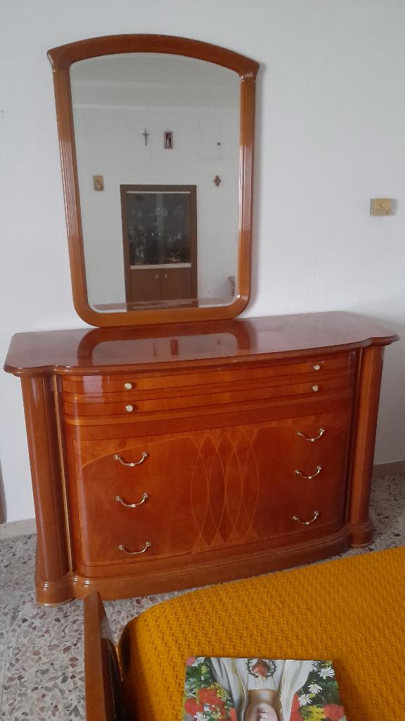 Camera Matrimoniale (come da foto), come nuova, usata pochissimo in vero legno robusto-composta da 5 pezzi- Letto matrimoniale, 2 comodini, comò e specchiera- Vendo per non utilizzo ad € 2400- Preferisco ritiro diretto-Astenersi perditempo
