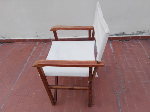 Sedia da regista ripiegabile in ottimo stato. Possibilità di spedizione. Possibilità di visionarla qualsiasi giorno della settimana senza impegno. Vendo a euro 50. Tel.339/1246402.