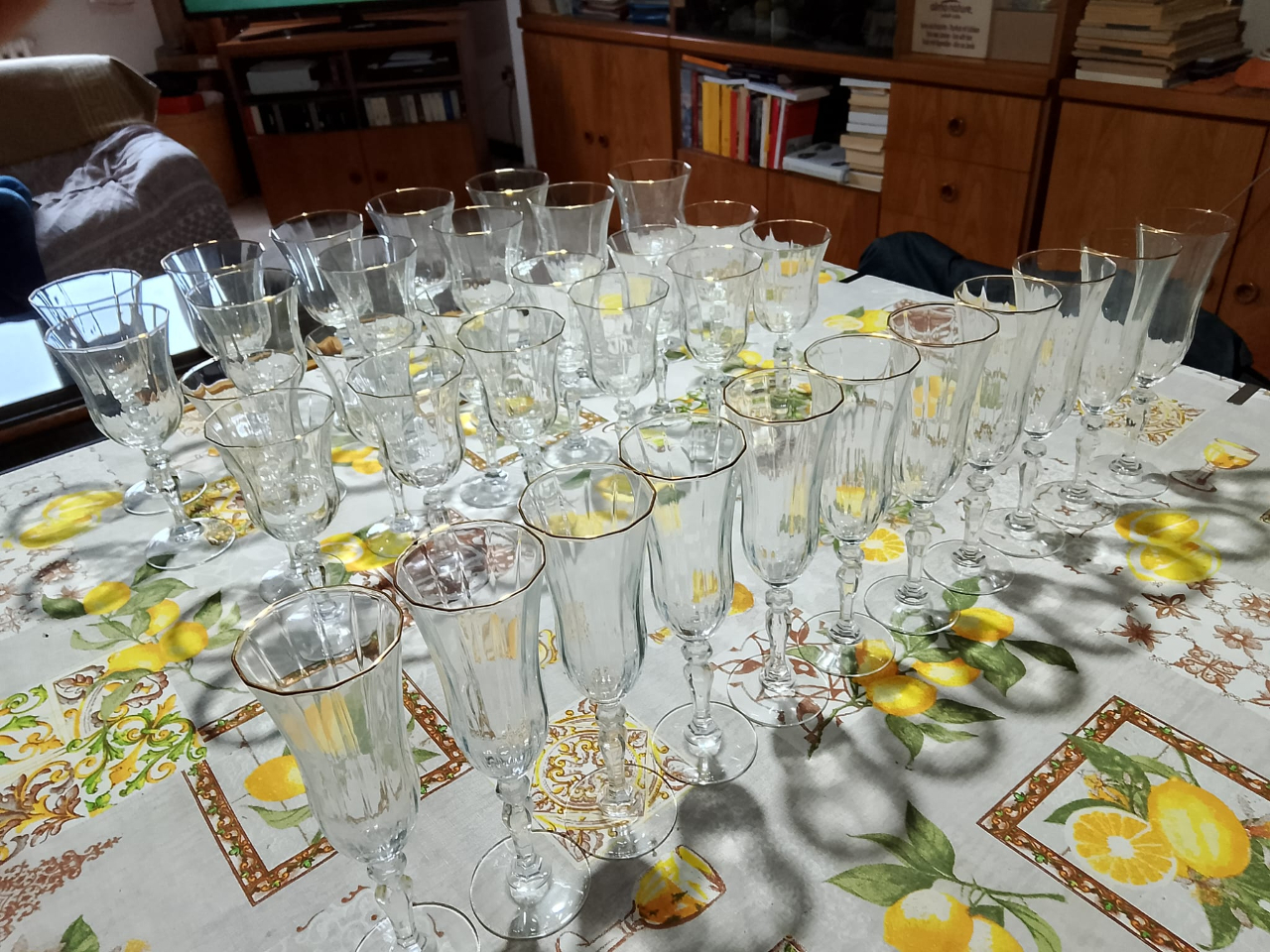 con giro dorato. Il servizio è composto da 12 calici acqua, da 11 calici vino, da 11 calici spumante. Possibilità di visionarli qualsiasi giorno della settimana. Vendo a euro 50. Tel.339/1246402.