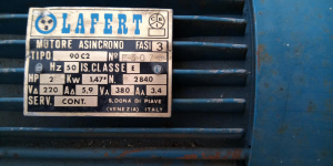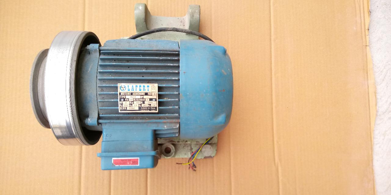 Motore industriale trifase, Kw. 1,5 completo di doppia pulegga e supporto. perfettamente funzionante.