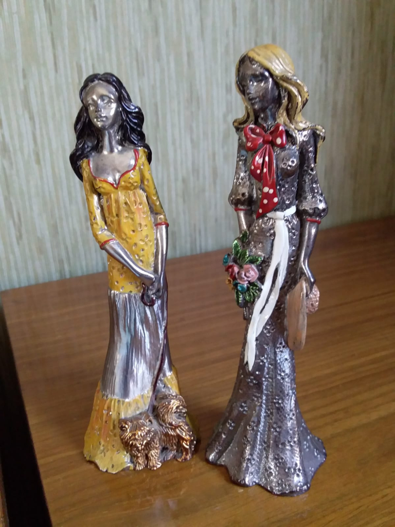 Due pupette in peltro in ottime condizioni. Possibilità di visionarle qualsiasi giorno della settimana. Possibilità di spedizione. Vendo a 20.00 euro. Tel.339/1246402.