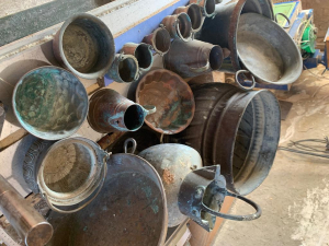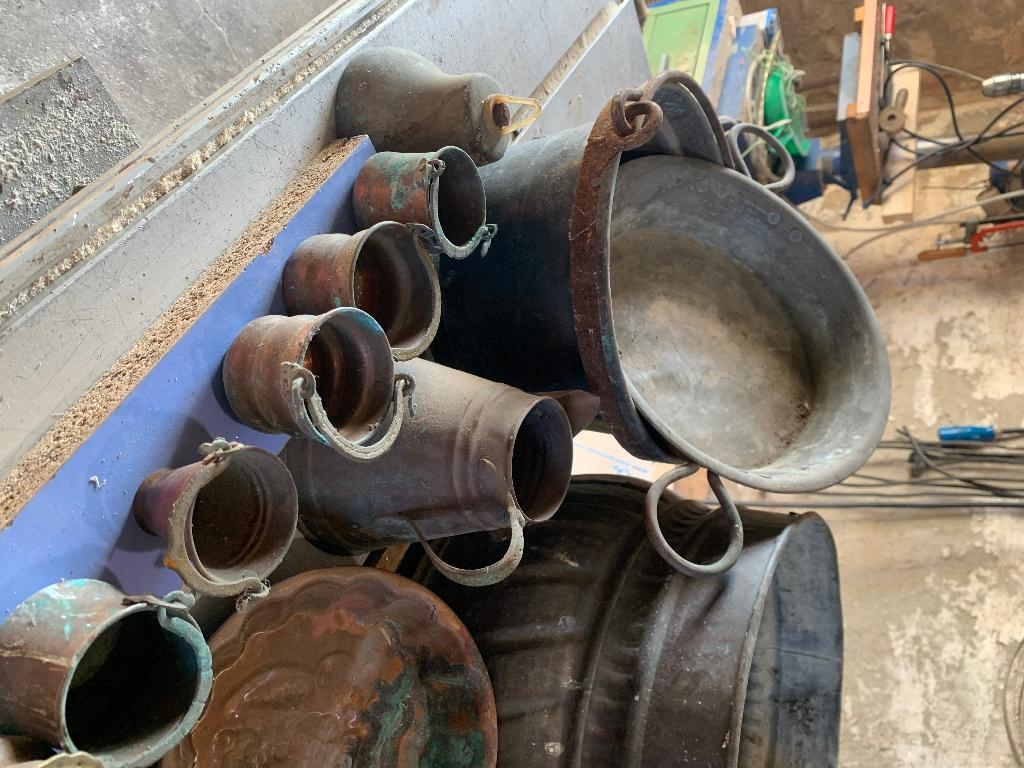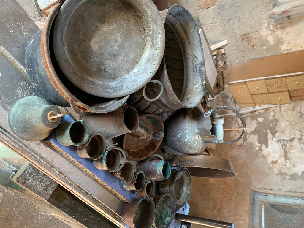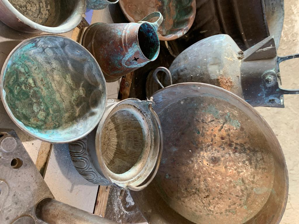 Oggetti in rame antico originali sono da ripulire ma ben conservati