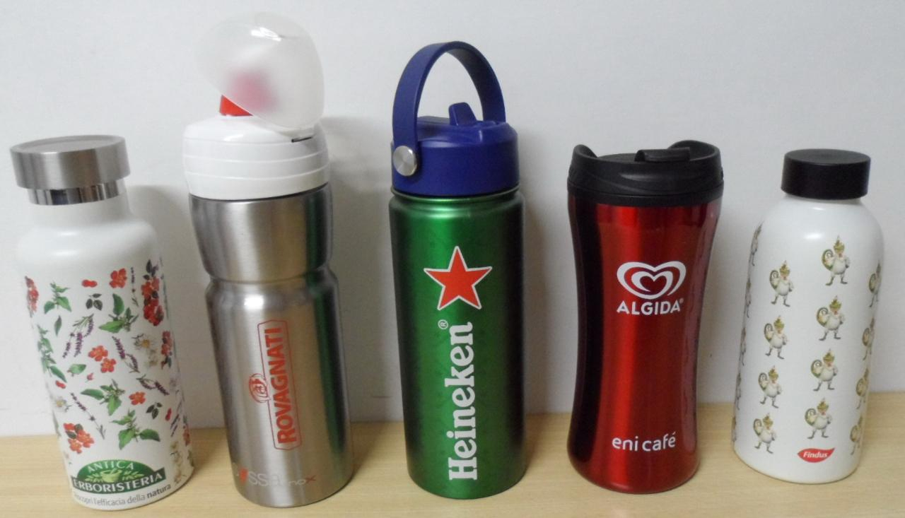 5 borracce termiche NUOVE mai usate, 4 in acciaio, ed 1 (quella Rossa) in plastica, con tappi avvitabili, brandizzate- Vendo per non utilizzo, ad Euro 15 cadauna, o tutte ad euro 60- Preferisco il ritiro diretto- Astenersi perditempo- Tutto come da foto B- cl 50, e più