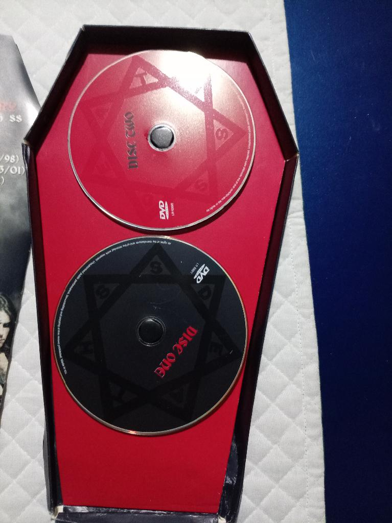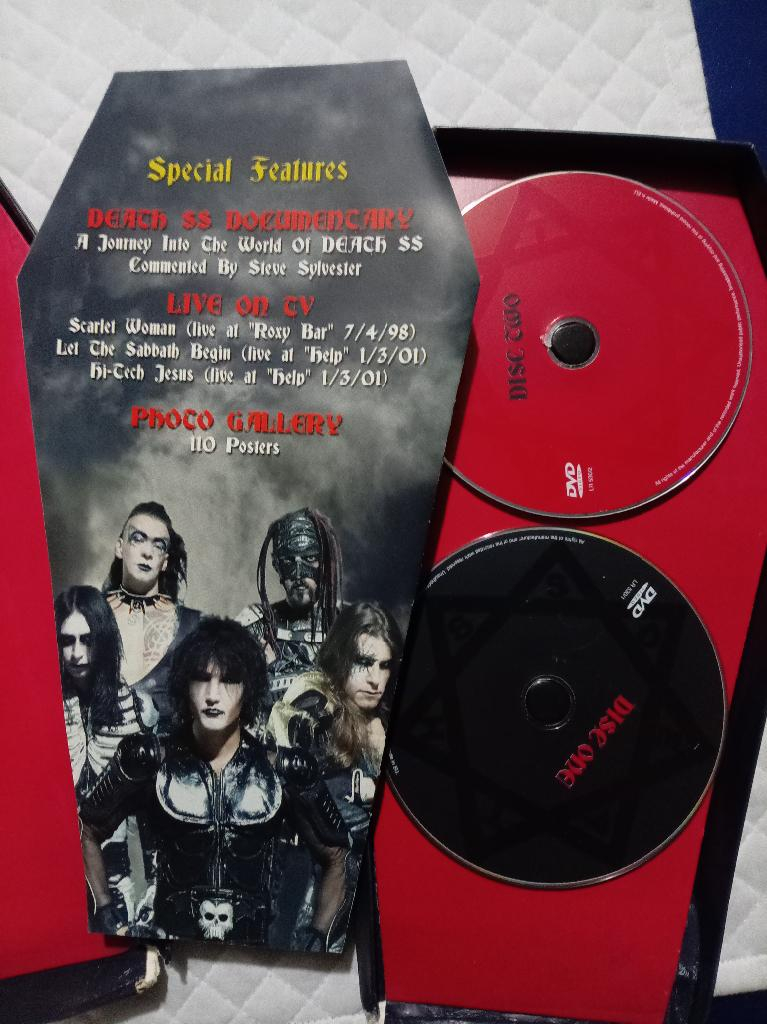 DEATH SS - 30 Years of Horror Music- 2007.Cofanetto speciale in edizione limitata,a forma di bara contenente 2 Dvd di filmati inediti della band heavy metal,Usata,in ottimo stato in confezione originale (la parte esterna della confezione con gli angoli segnati),e libretto esclusivo in allegato,come da foto. ( euro 19 )