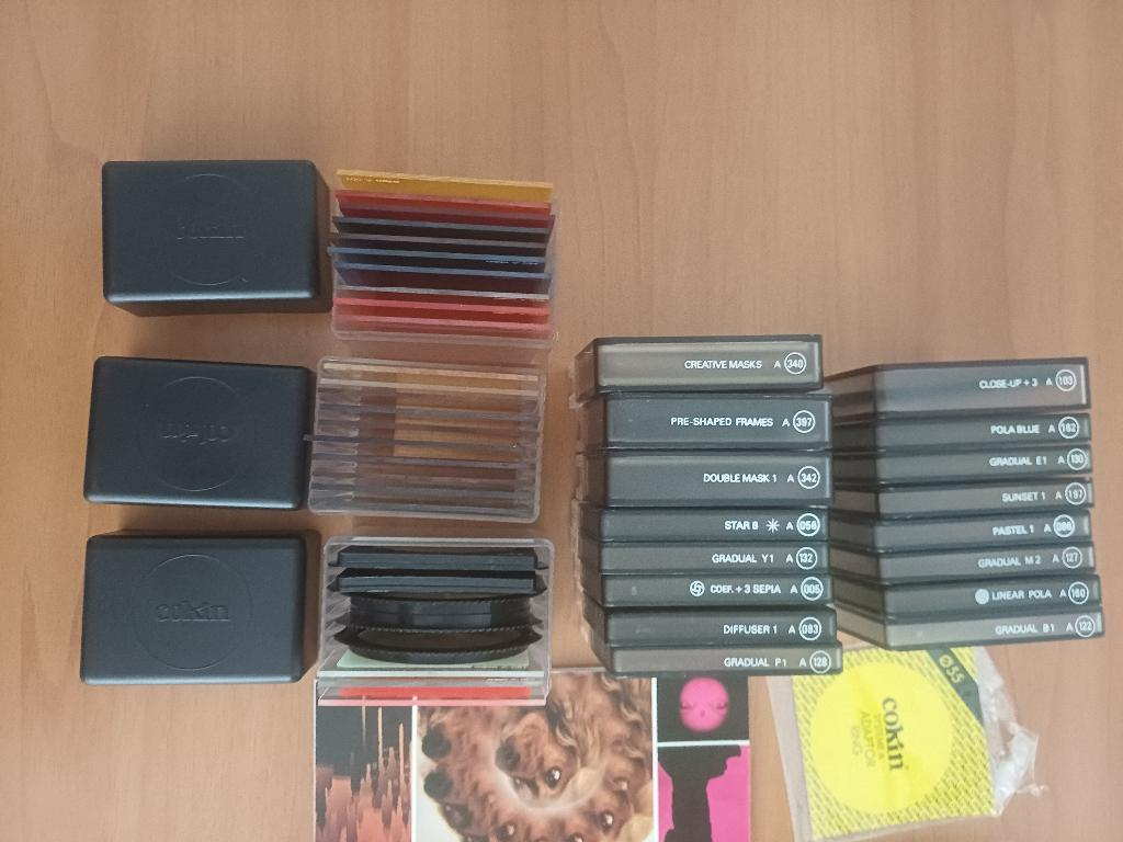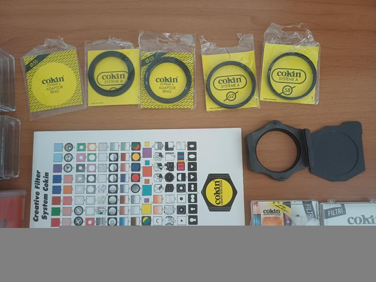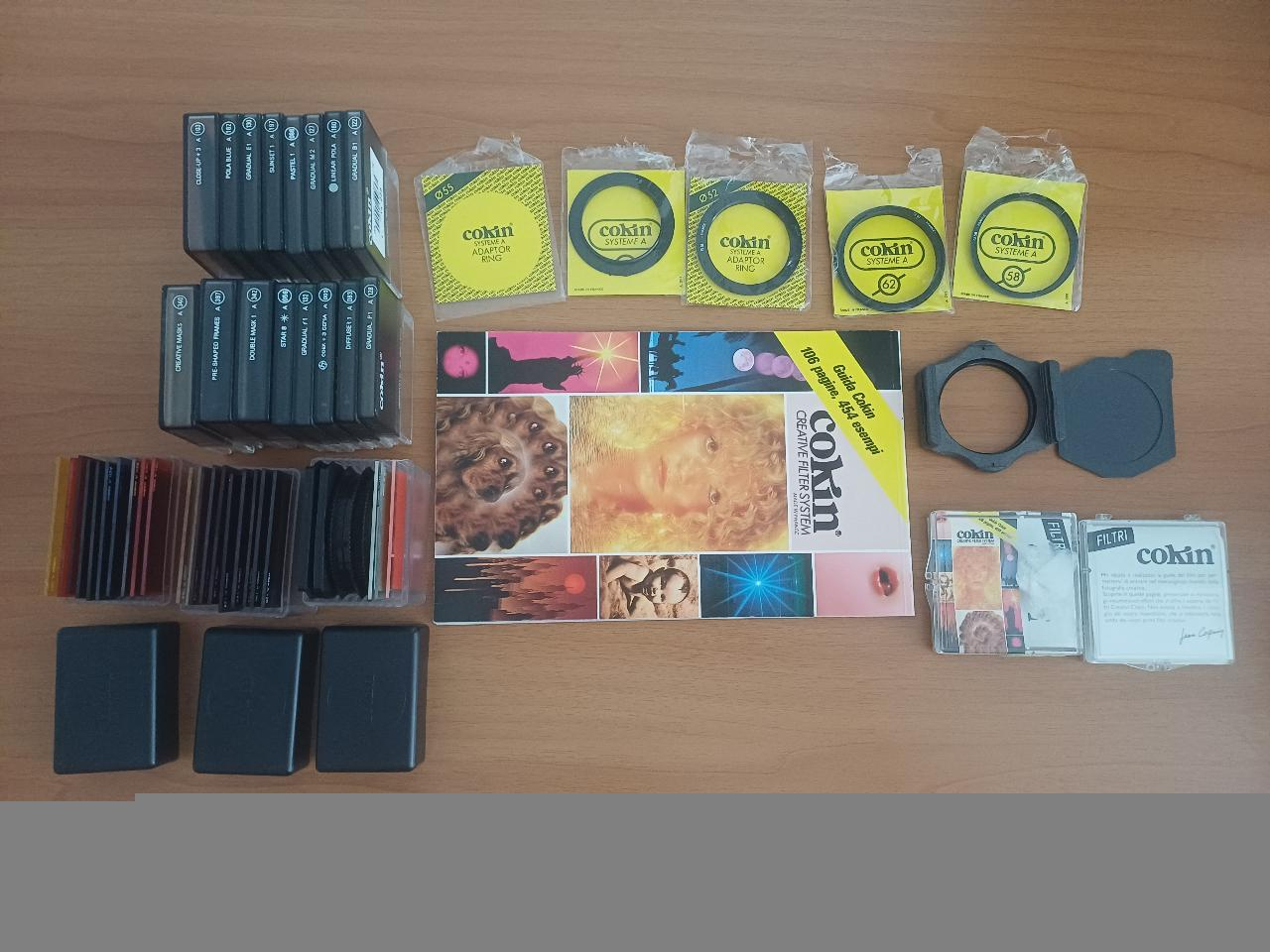 Vendo filtri fotografici Cokin serie A. Sono 35 Filtri Cokin Serie A, come nuovi, comprese confezioni, innesti, anelli adattatori vari diametri, chiusure e catalogo.Tutto a 100 euro.